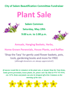 Saturday the 19th of May from 9am to 1pm at the Salem Common