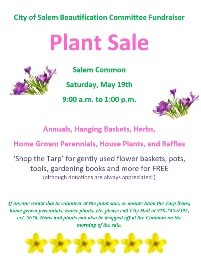 Please join us to keep Salem beautiful and clean by picking up trash along Bridge Street and the Ropes Garden.