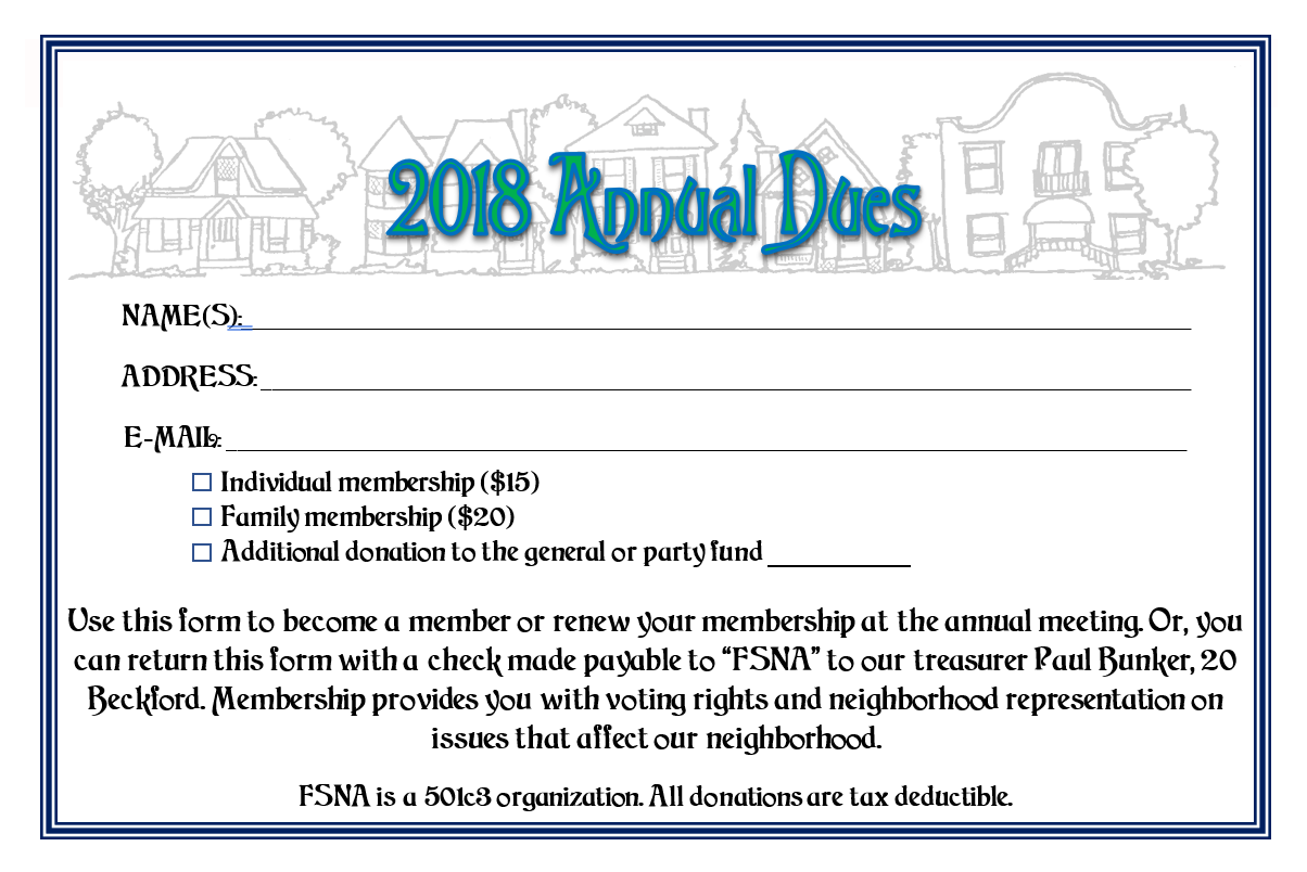 Dues will be collected at this meeting, $15.00 for an individual, $20.00 for a family.
